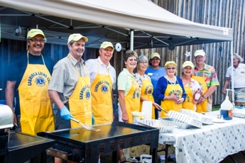 Gabriola Lions ready to serve a yummy pancake breakfast with all the trimmings in the Village on a hot August 18 morning.