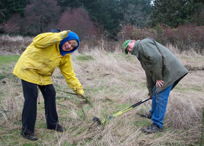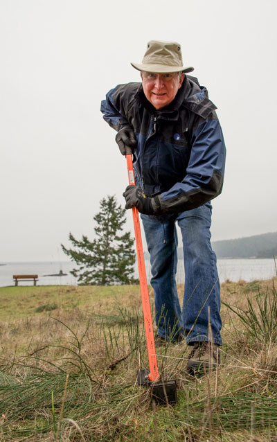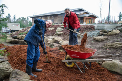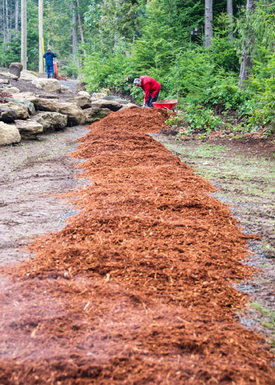 February 2013: Gabriola Lions laying out a soft path at the Health Centre for easy walking. (Photos: DB)