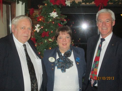 District Governor Leslie Smith is flanked by Zone Chair Larry Johannes (left) and Gabriola Lions President Graham Miller at the annual dinner. (Photo: BK)